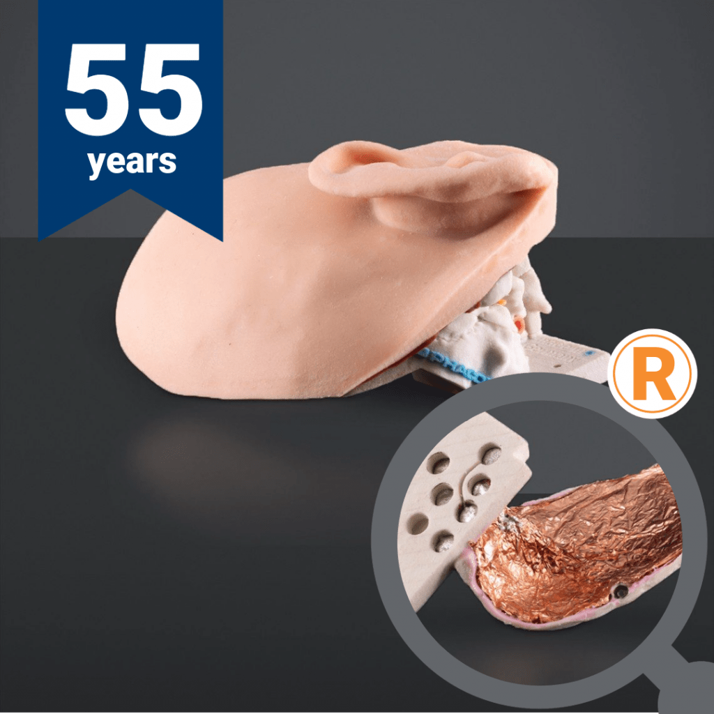 The PHACON Temporal Bone Patients are artificial 3D models to practice different surgeries on the temporal bone, for instance a cochleostomy. They are compatible with the PHACON Temporal Bone Trainer and PHACON Temporal Bone Assistant equipment sets. All PHACON artificial 3D models are based on real patient CT-data, reflecting the most diverse human tissue properties (bones, cartilage, muscles, skin and nerves), handcrafted to the smallest detail using a variety of materials. Other compatible PHACON Temporal Bone Patients can be reordered at PHACON any time.
