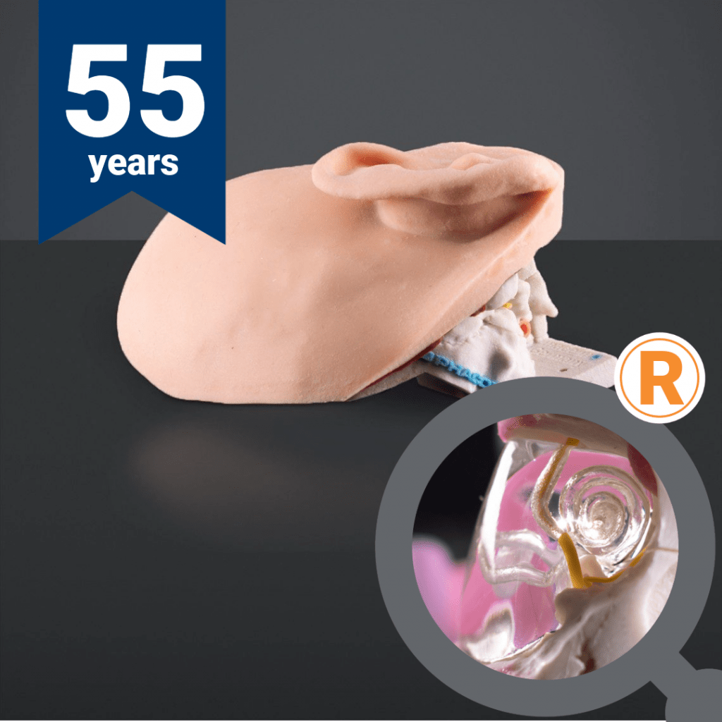 The PHACON Temporal Bone Patients are artificial 3D-models to practice different surgeries on the temporal bone, for instance a cochleostomy. They are compatible with the PHACON Temporal Bone Trainer and PHACON Temporal Bone Assistant equipment sets. All PHACON artificial 3D-models are based on real patient CT-data, reflecting the most diverse human tissue properties (bones, cartilage, muscles, skin and nerves), handcrafted to the smallest detail using a variety of materials. Other compatible PHACON Temporal Bone Patients can be reordered at PHACON any time.